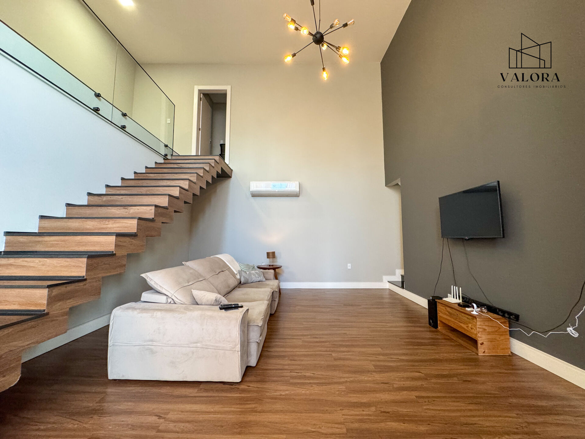 O imóvel conta com acabamentos de alto padrão: porcelanato, piso vinílico, teto rebaixado em gesso, portas laqueadas, iluminação em LED e pé-direito duplo. O portão eletrônico complementa a segurança e a comodidade.