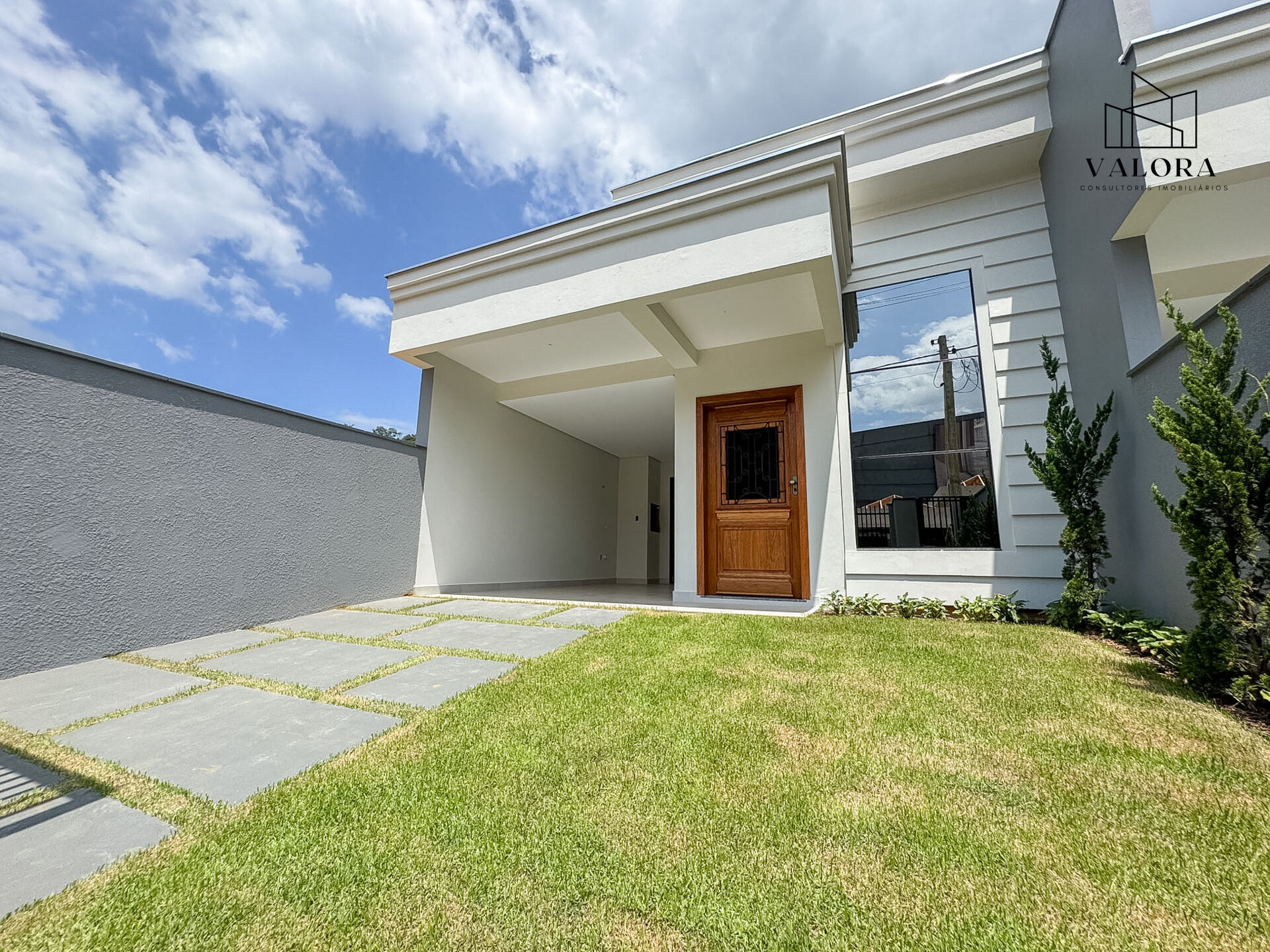 A casa conta com 2 dormitórios, sendo 1 suíte, além de banheiro social. Possui sala de estar e sala de jantar integradas, cozinha independente e área de serviço separada, proporcionando melhor organização dos ambientes.